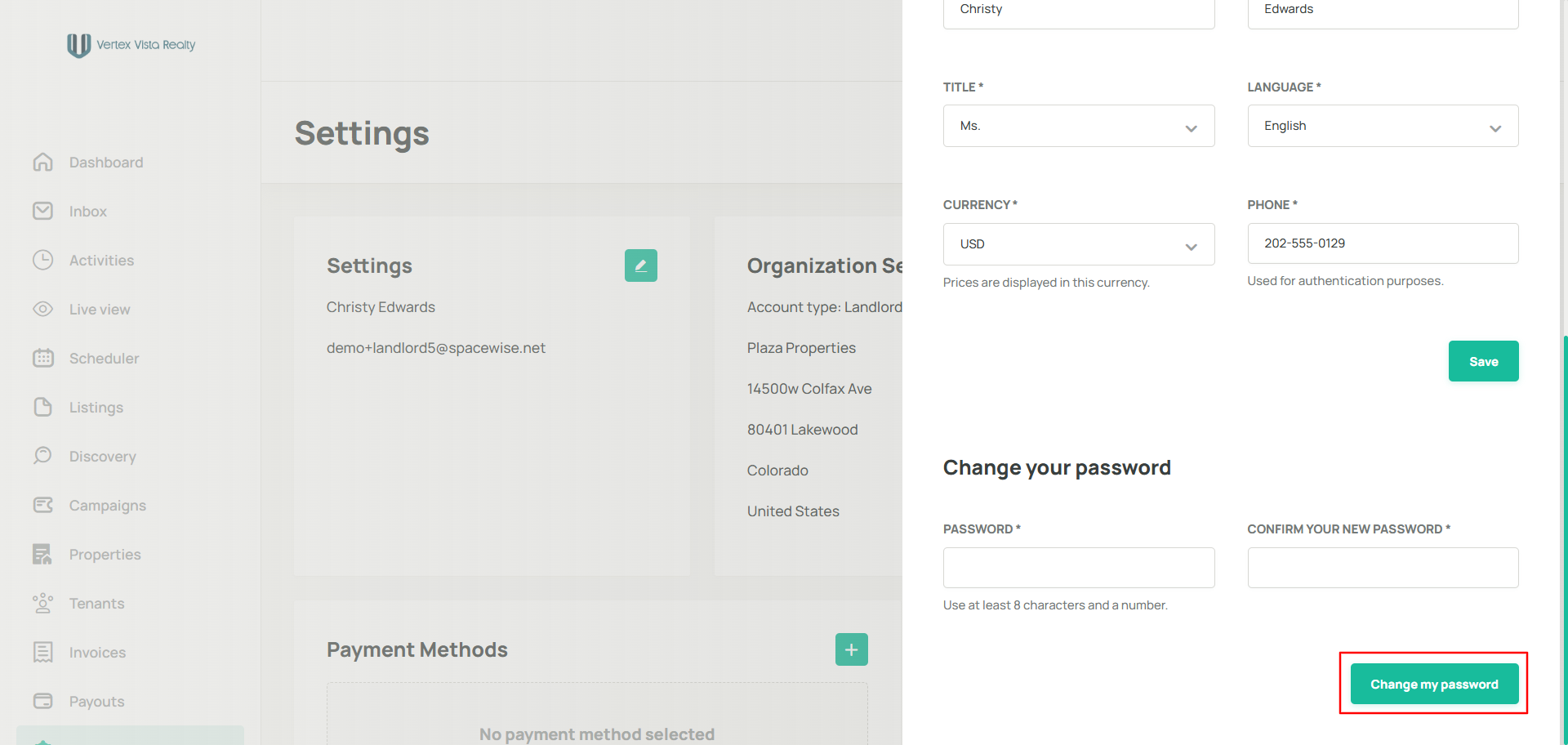 4. Enter your new password in the Password and Confirm Your New Password fields.